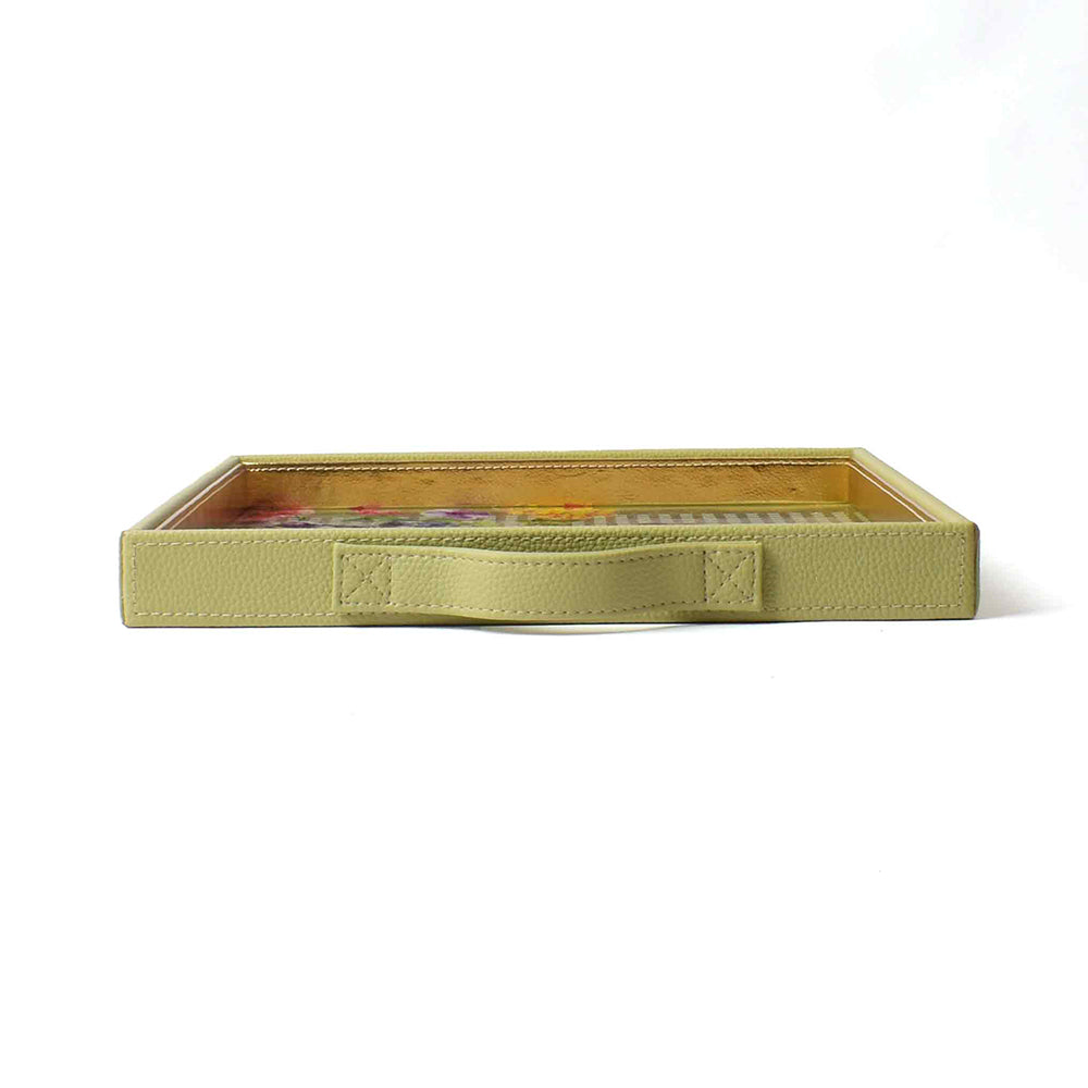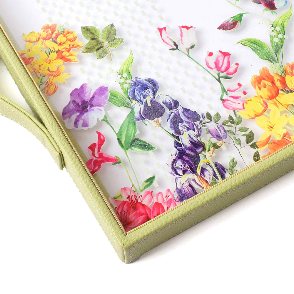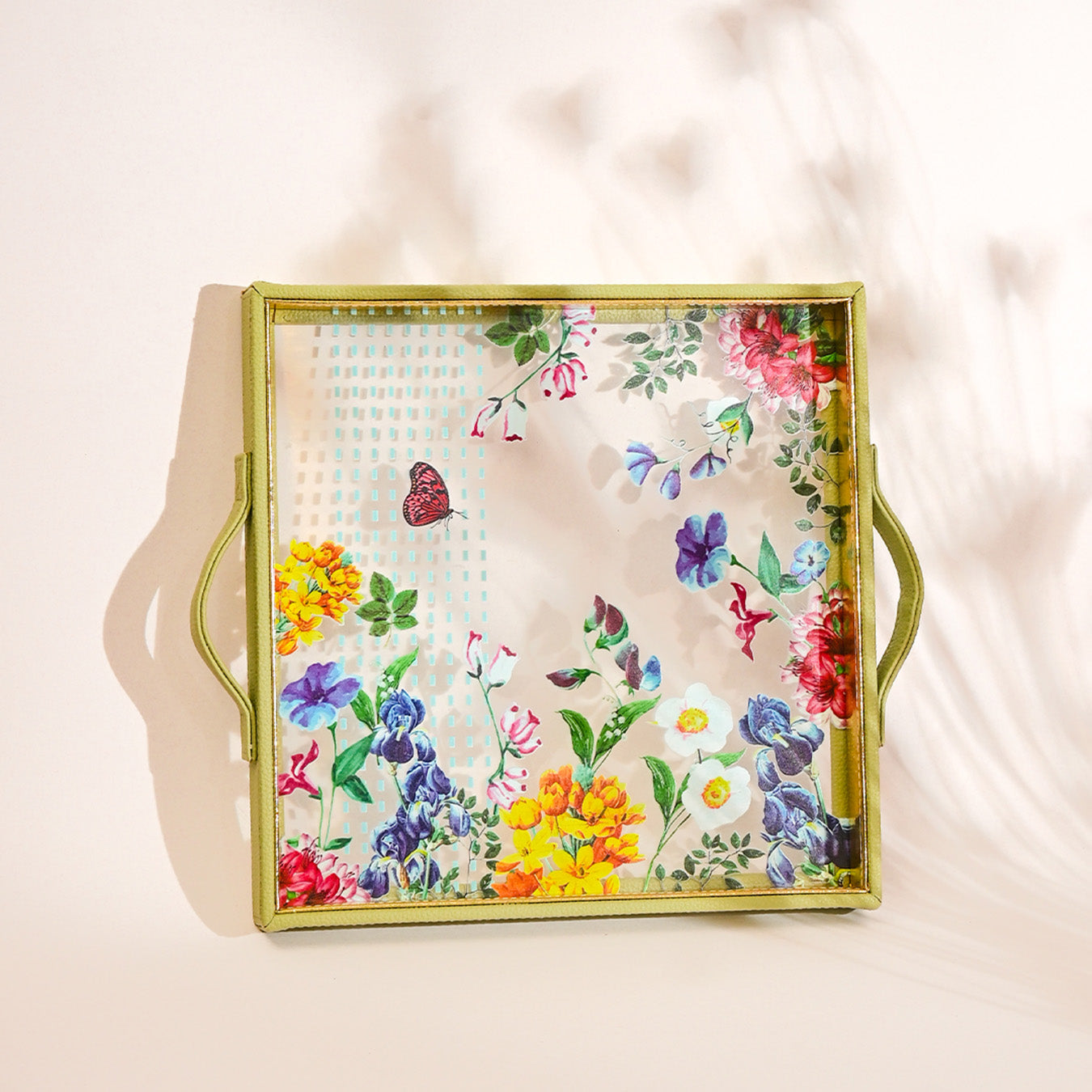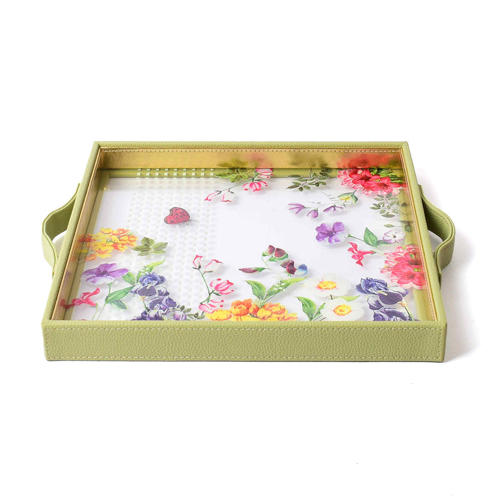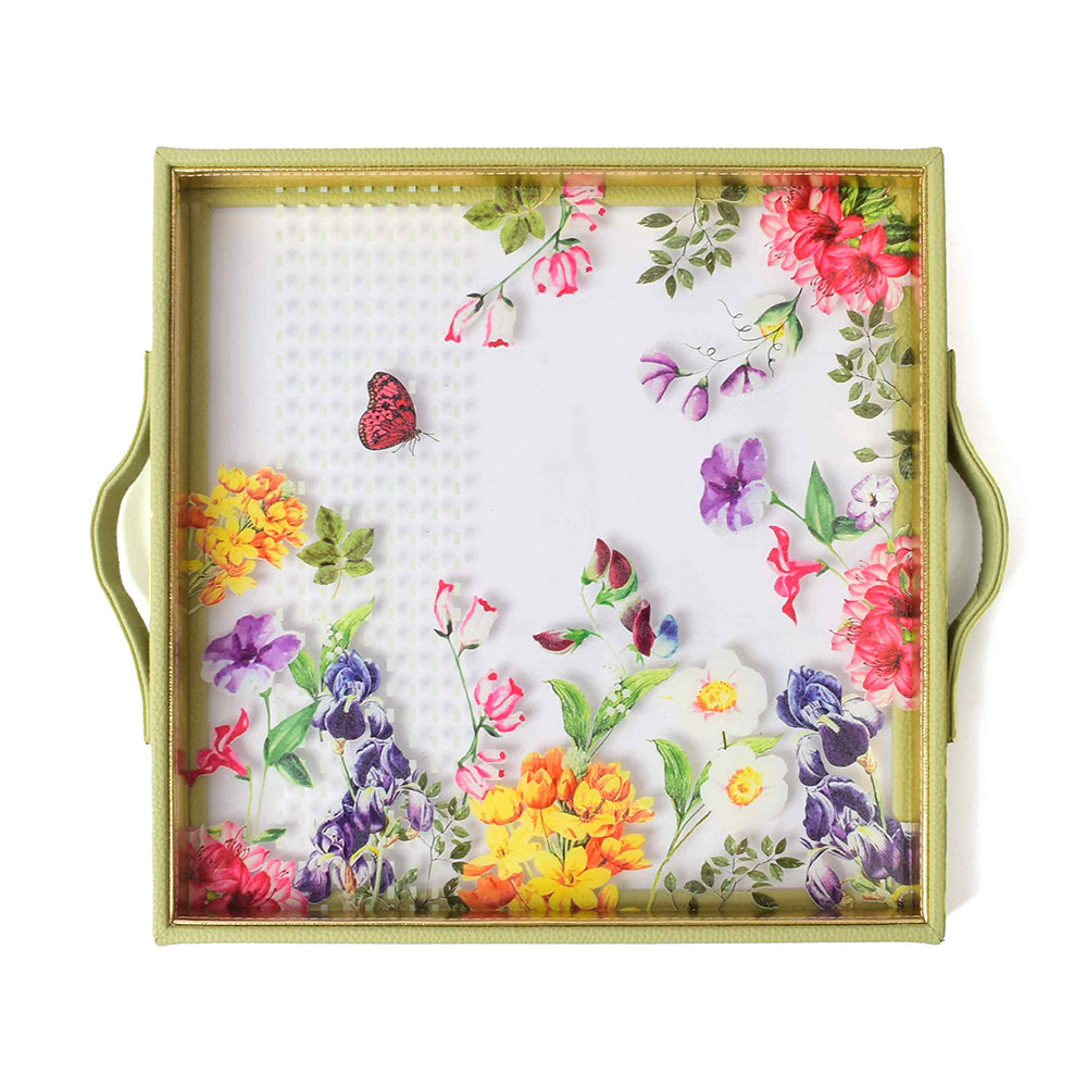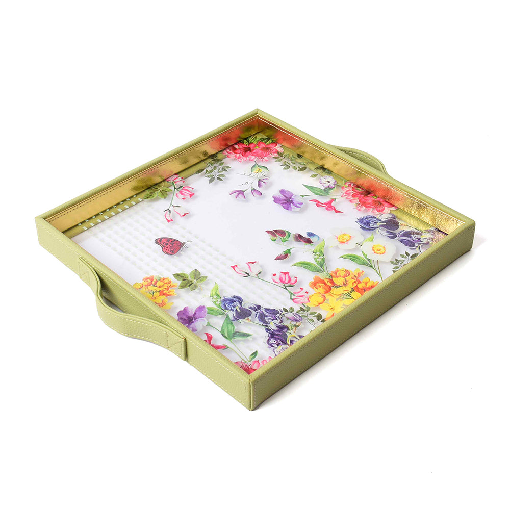 | A vibrant celebration of spring, the Basant Print Glass Leatherette Square Tray brings the essence of renewal and joy to your table. Crafted with a sleek glass surface and a premium leatherette base, this luxury serving tray is both durable and effortlessly elegant—a perfect blend of style and function. Inspired by the burst of colors that define Basant (spring festival), this design is a kaleidoscope of hues, symbolizing the vibrancy of life, emotions, and experiences. Whether used for serving drinks, displaying décor, or gifting a loved one, this artful tray transforms any occasion into a poetic celebration of nature’s eternal renewal. Stylish, sophisticated, and timeless, let the Basant Print Tray infuse your home with warmth, artistry, and effortless charm. |