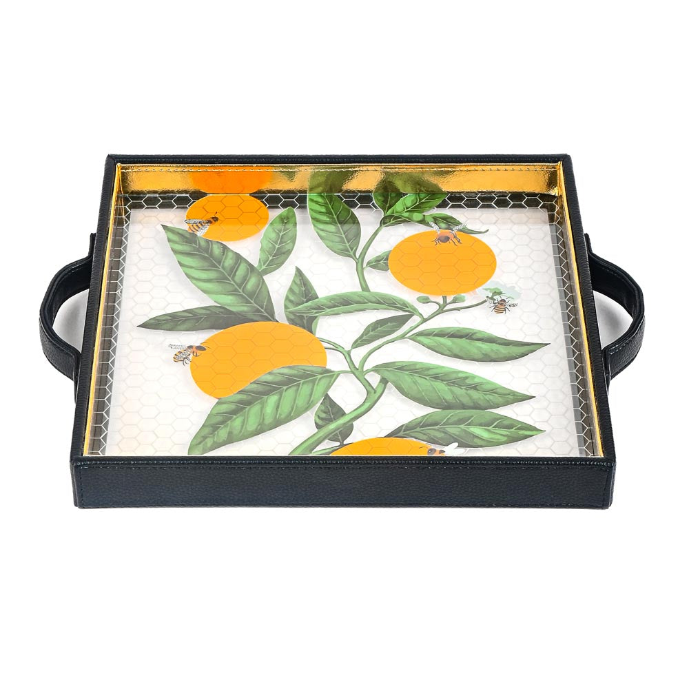 | Celebrate the beauty of nature and the spirit of community with the Bee Print Glass Leatherette Square Tray—a perfect blend of functionality and art. Crafted with a sleek glass and premium leatherette, this luxury serving tray is designed to elevate your hosting experience while seamlessly complementing modern and industrial-style spaces. Featuring a sophisticated black and yellow honeycomb pattern, this tray is adorned with delicate bee motifs, symbolizing growth, unity, and teamwork. Every detail is a tribute to the graceful rhythms of nature, meticulously crafted by skilled artisans. Whether you're serving cocktails at a lively gathering or styling it as a statement décor piece, this versatile tray is an essential addition to any home. Durable, easy to clean, and endlessly stylish, it also makes a thoughtful gift for weddings, housewarmings, or festive occasions. Let the Bee Print Tray bring warmth, elegance, and a touch of nature’s charm to your space. |