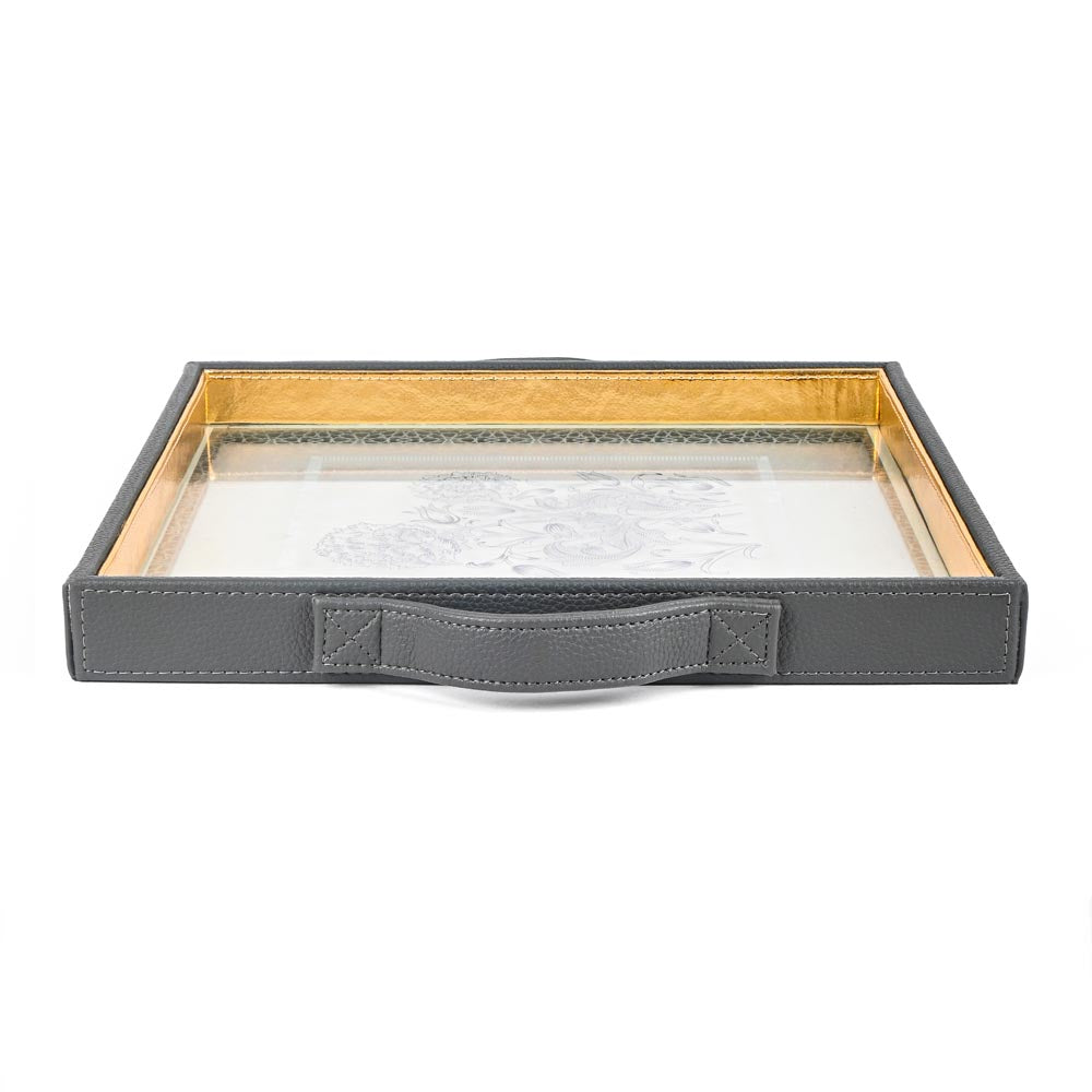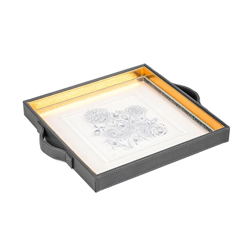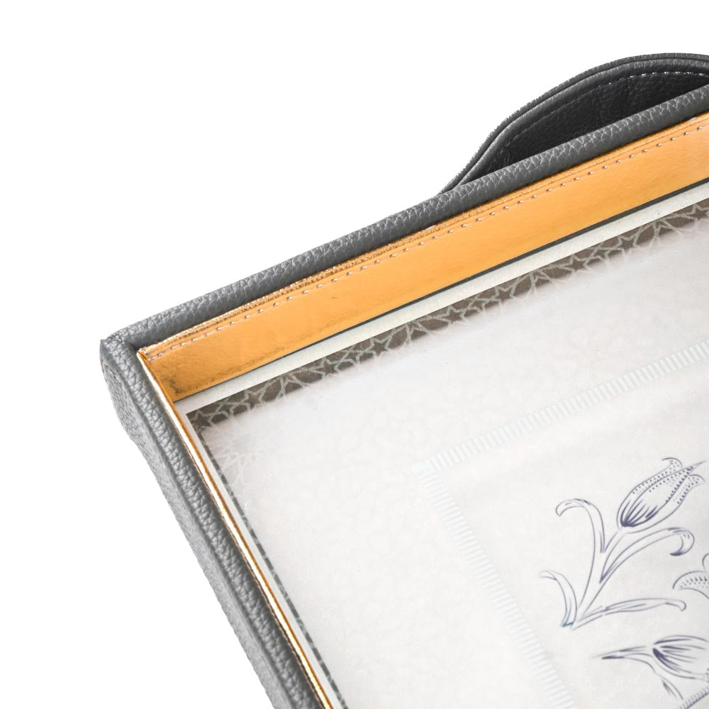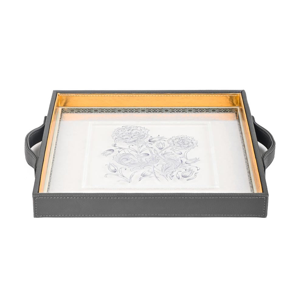 | Unfurl springtime elegance on your table year-round with the Grey Iris Print Glass Leatherette Square Tray. A perfect blend of style and function, this premium serving tray features a sleek glass surface set atop a durable leatherette base, making it an essential for both hosting and home décor. The light grey floral illustrations on the glass base are a modern take on painterly botanical art, with powder blue iris blossoms, slender stems, and delicate petals forming a timeless composition. Subtle gilded geometric accents add a touch of understated luxury, making this tray a stunning centerpiece for any setting—whether it’s a cozy family brunch or an elegant dinner party. Stylish, durable, and easy to clean, this tray is a must-have for those who appreciate functional elegance. It also makes a perfect gift for housewarmings, weddings, or festive occasions. Let the Grey Iris Tray bring effortless charm and sophistication to your gatherings. |