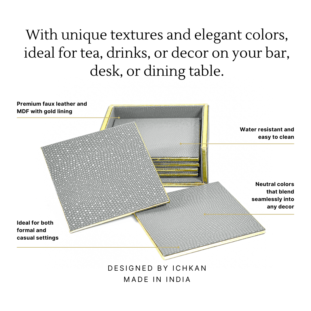 Leatherette Square Coasters Set of 6 | Grey | Serpentine