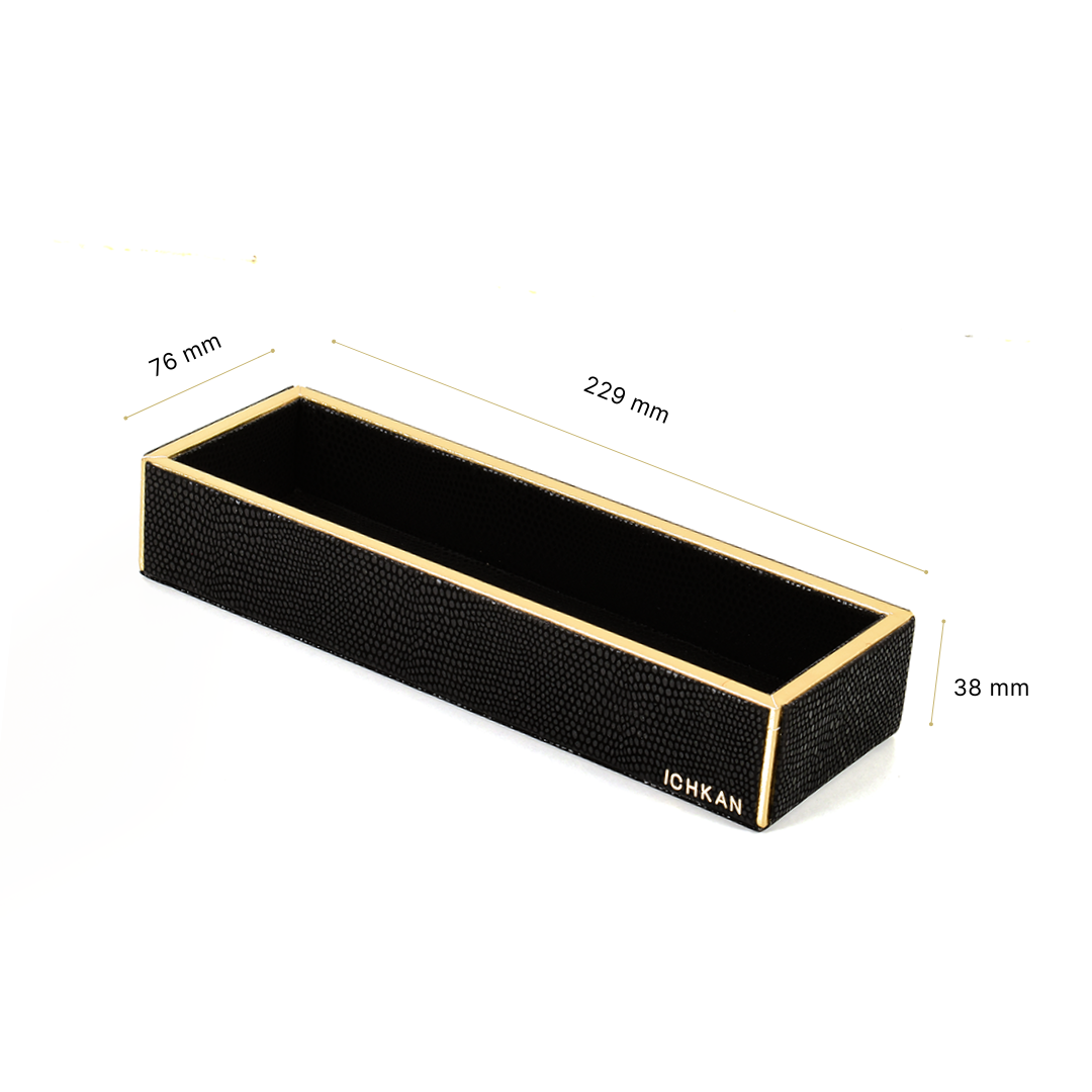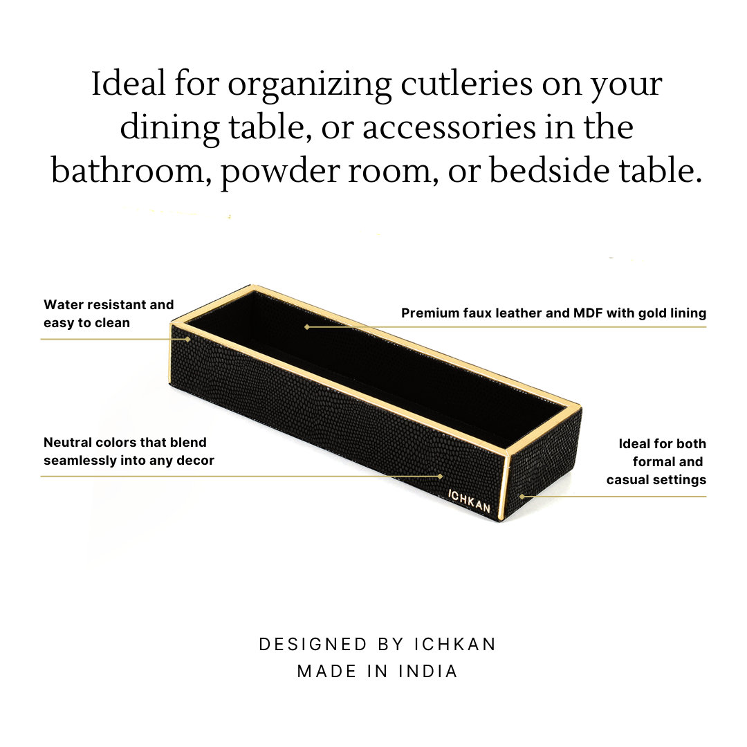 Leatherette Rectangle Long Cutlery Tray | Black | Serpentine