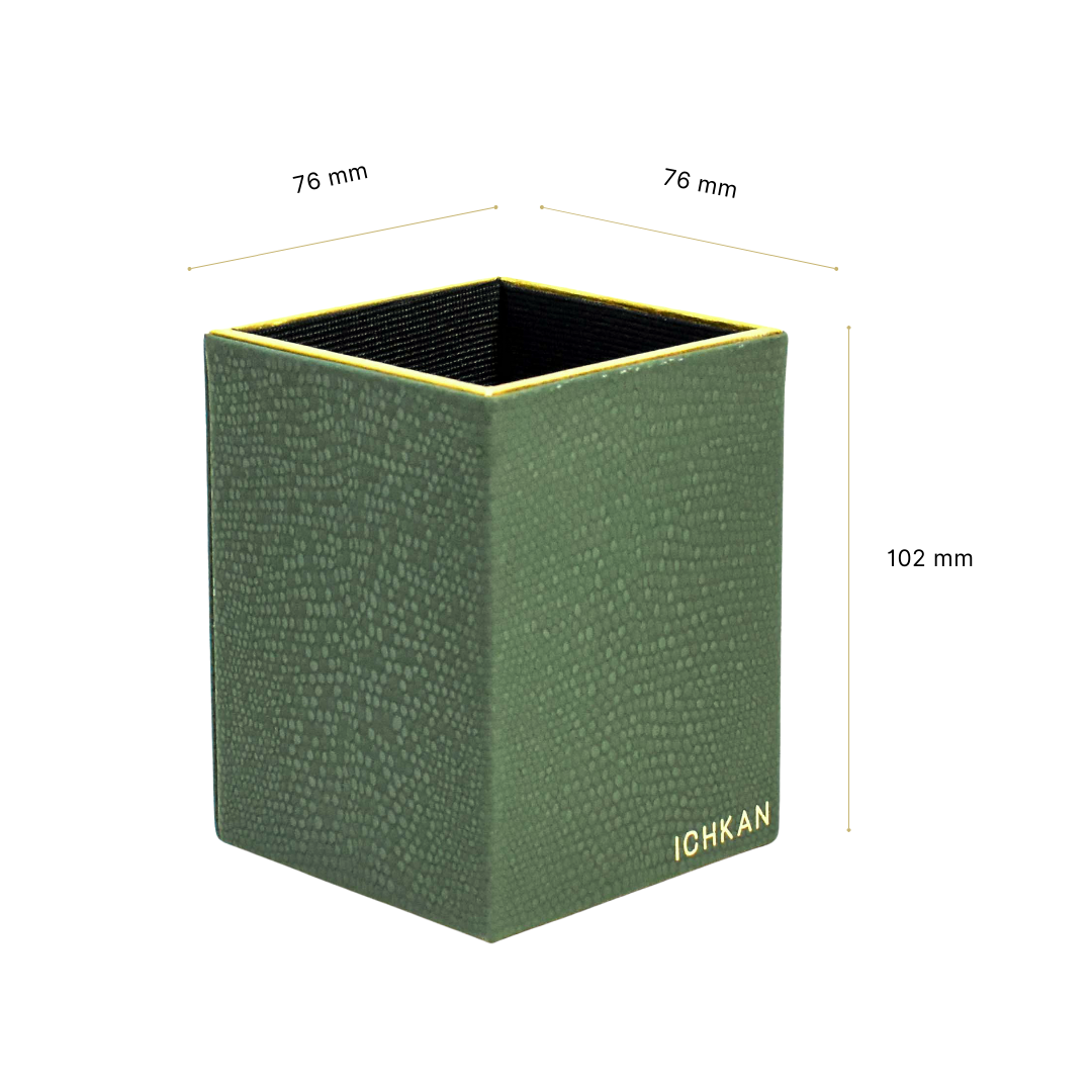 Leatherette Square Pen/Brush Holder | Olive Green | Serpentine