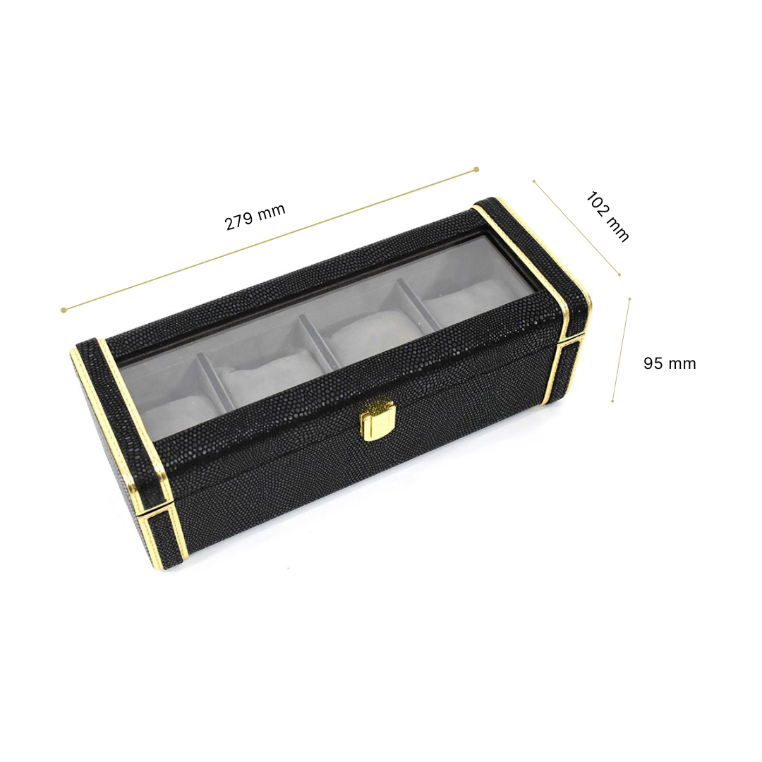Leatherette Watch Storage and Organiser Box 4 Partition | Black | Serpentine