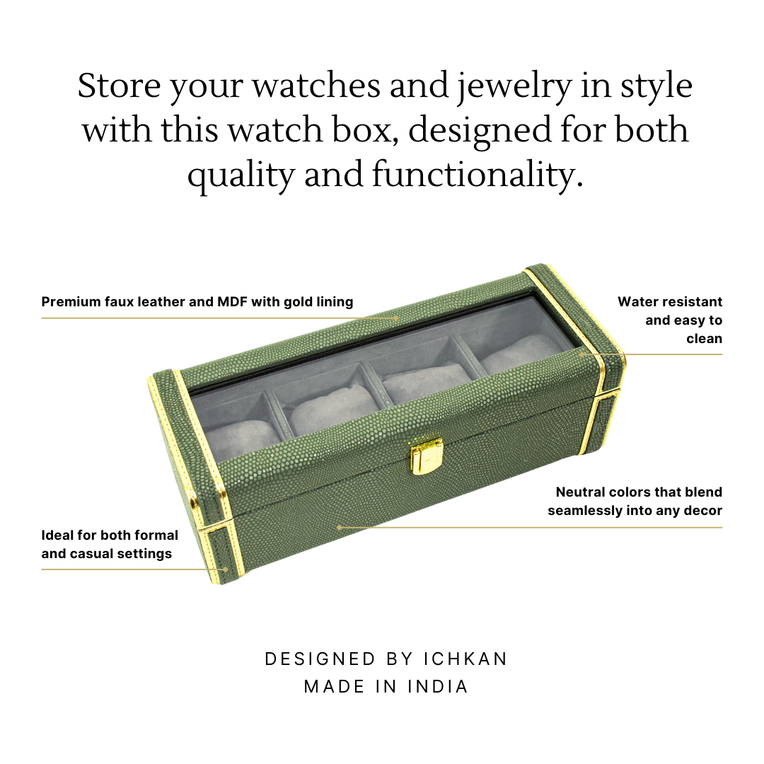 Your perfect organising solution, this premium vegan leather watch box will help you store your watches and jewellery with style. Designed with quality and functionality, this watch organiser can hold upto 4 watches.