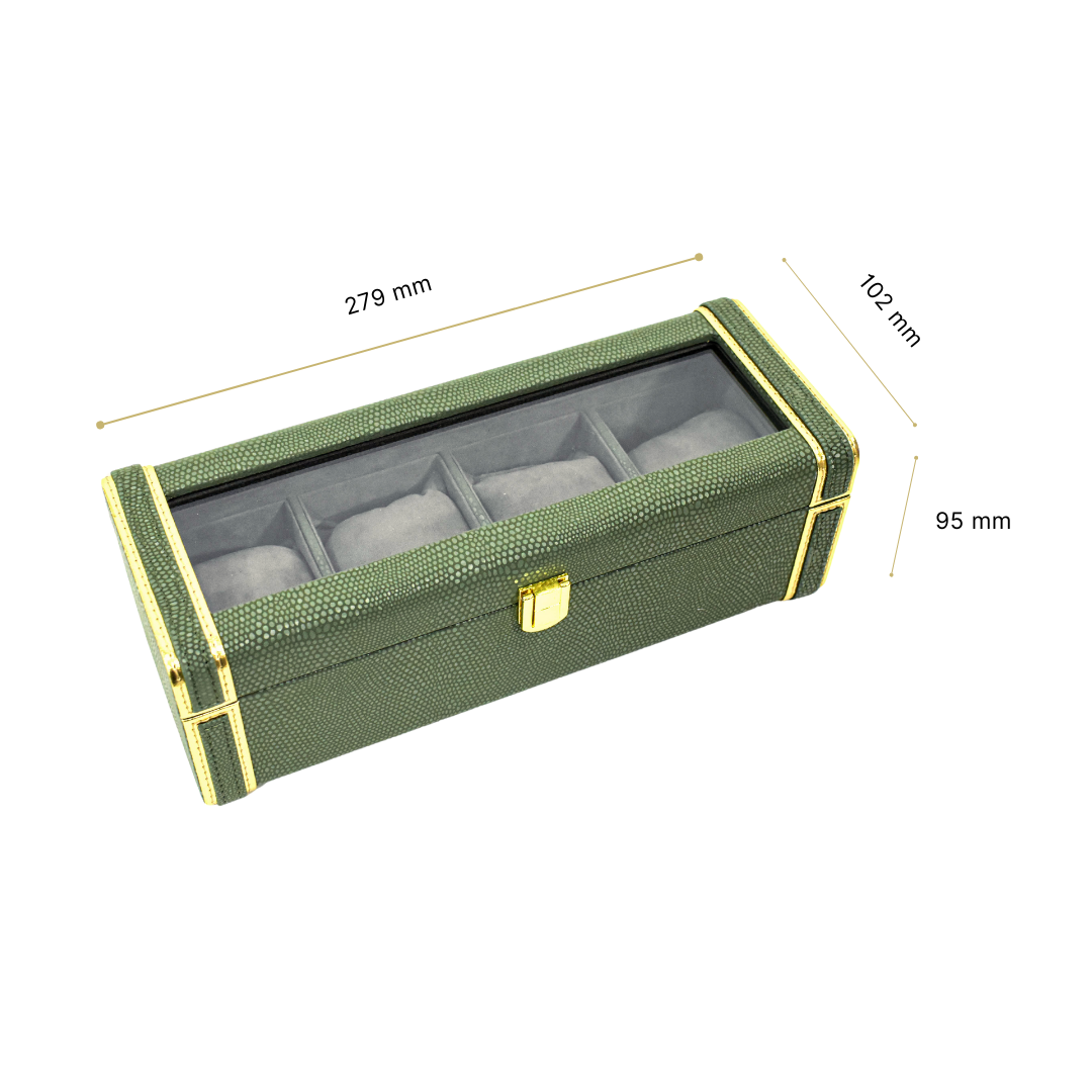 Leatherette Watch Storage and Organiser Box 4 Partition | Olive Green | Serpentine