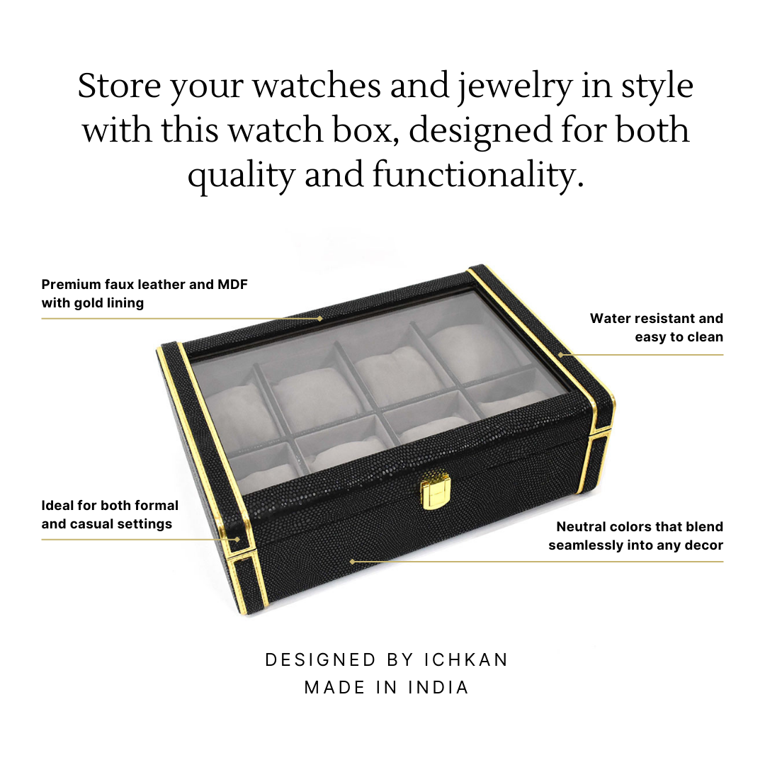 Leatherette Watch Storage and Organiser Box 8 Partition | Black | Serpentine